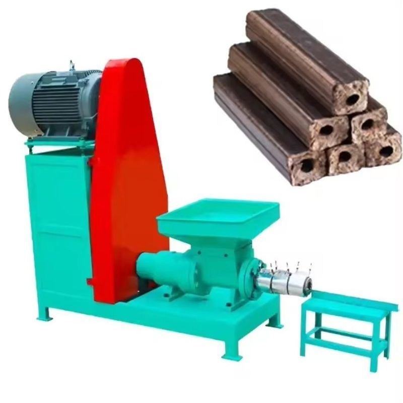 Машины для брикетов из древесного угля использует пиломатериалы, солому, рисовую кожуру, куски бамбука и т. д. После измельчения дробиком,под действием спирального винта и нагревательного кольца образуется зона высокой температуры и высокого давления для переработки свободного сырья в полые стержни.Этот продукт имеет высокую плотность, небольшие размеры и хорошую воспламеняемость и может заменить дрова и уголь.